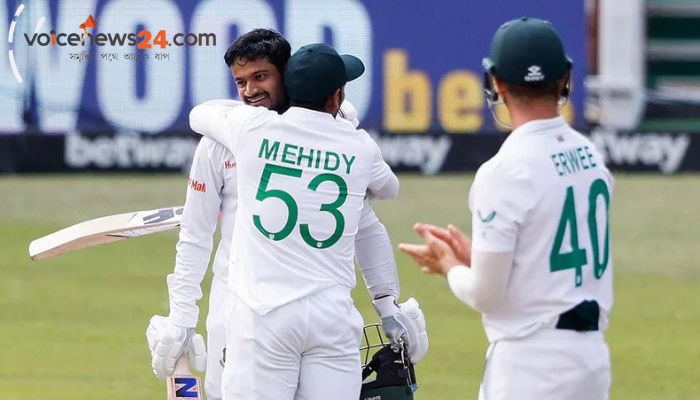 দক্ষিণ আফ্রিকা: ৩৬৭ ও ৪ ওভারে ৬/০ (এরউয়ি ৩*, এলগার ৩*; খালেদ ১-০-১-০, মিরাজ ২-১-২-০, নাজমুল ১-০-৩-০)।