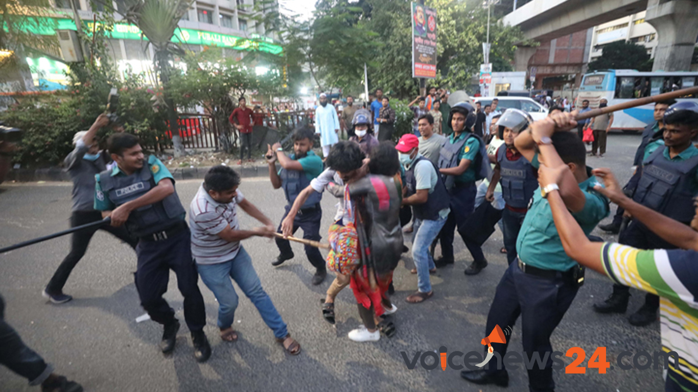 গতকাল রোববার সন্ধ্যায় রাজধানীর শাহবাগ মোড়ে ‘প্রগতিশীল ছাত্রসংগঠনসমূহ’ ব্যানারে বাম ছাত্রসংগঠনগুলোর ডাকা বিক্ষোভ সমাবেশের শেষ পর্যায়ে পুলিশ লাঠিপেটা করে৷