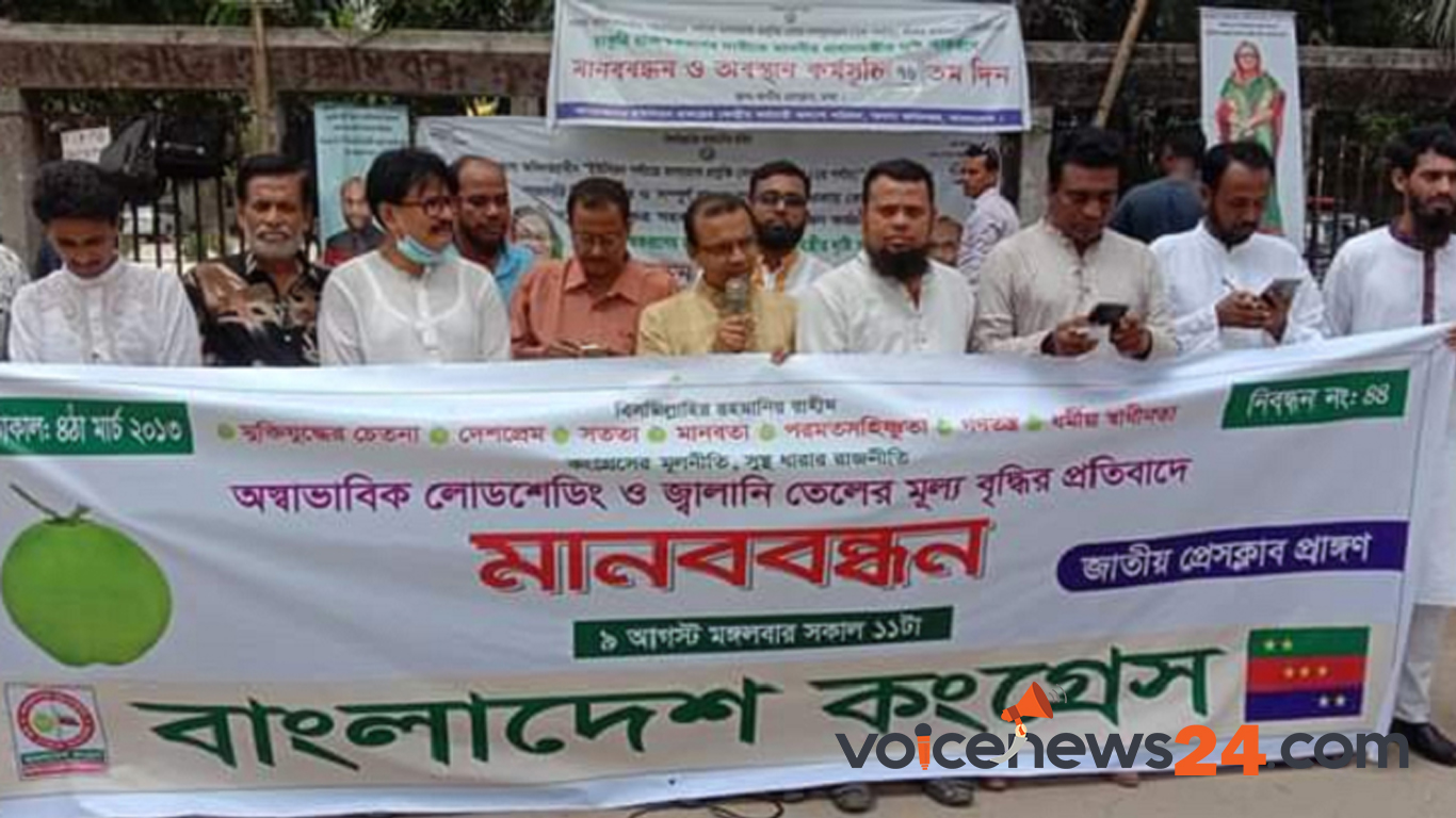 মানববন্ধন সঞ্চালনা করেন বাংলাদেশ কংগ্রেসের মহাসচিব ইয়ারুল ইসলাম।