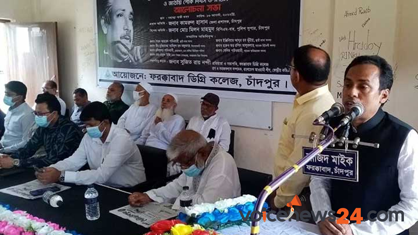 শনিবার চাঁদপুর ফরক্কাবাদ ডিগ্রি কলেজে বঙ্গবন্ধু শেখ মুজিবুর রহমান ও মুক্তিযুদ্ধ কর্ণার উদ্বোধন এবং জাতীয় শোক দিবস উপলক্ষে কলেজের মহাত্মা গান্ধী ভবনের অডিটোরিয়ামে এক আলোচনা সভায় সভাপতির বক্তব্যে তিনি এসব কথা বলেন।