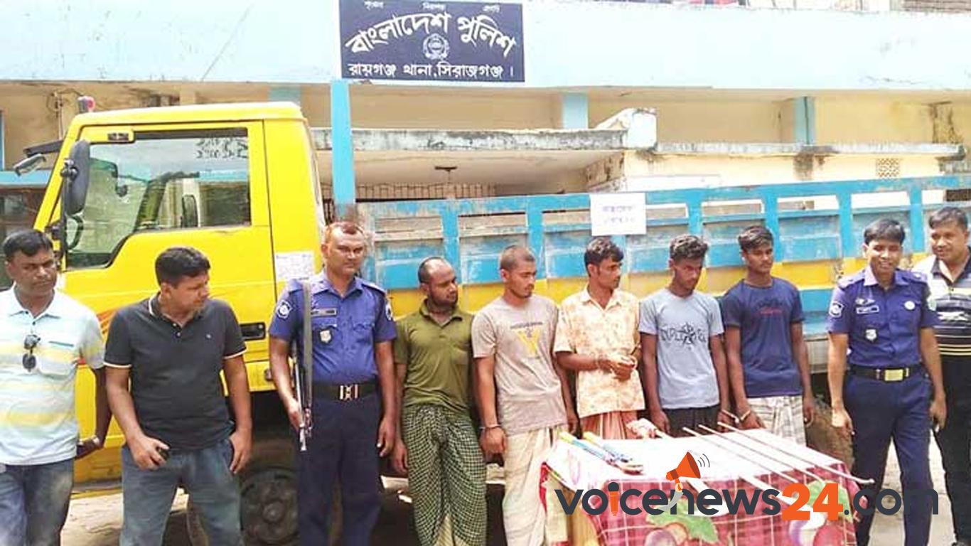 সিরাজগঞ্জের রায়গঞ্জে দেশীয় অস্ত্রসহ আন্তঃজেলা ডাকাত দলের ৫ সদস্যকে গ্রেফতার করেছে পুলিশ। গোপন সংবাদের ভিত্তিতে রায়গঞ্জ থানার ওসি মো. রফিকুল ইসলামের নেতৃত্বে পুলিশ শনিবার রাত ২টার দিকে অভিযান চালিয়ে উপজেলার সিমলা রাণীর হাট সড়কের বল্লাভেঙ্গুর বটতলা এলাকা থেকে ডাকাতির প্রস্তুতিকালে তাদের গ্রেফতার করে।