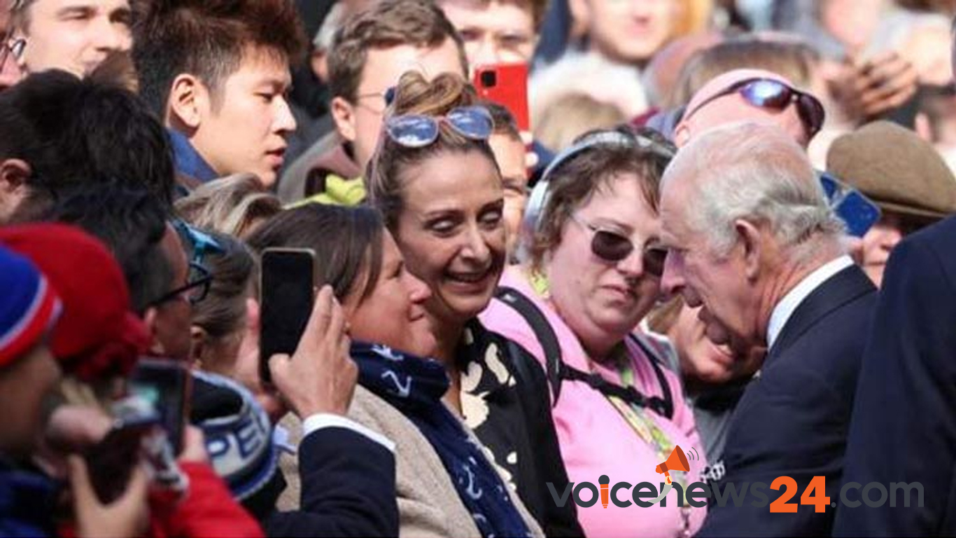 রাজা তৃতীয় চার্লস  গাড়ি থেকে নামার সঙ্গে সঙ্গে উপস্থিত জনতা তাকে স্বাগত জানান।