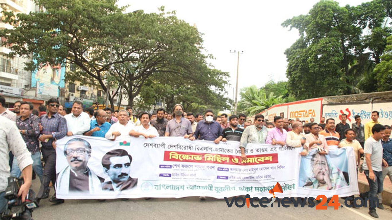 যুবলীগের সাধারণ সম্পাদক মাইনুল হোসেন খান নিখিলের আহ্বানে ঢাকা মহানগর দক্ষিণ যুবলীগের উদ্যোগে এ বিক্ষোভ মিছিল ও সমাবেশ অনুষ্ঠিত হয়।