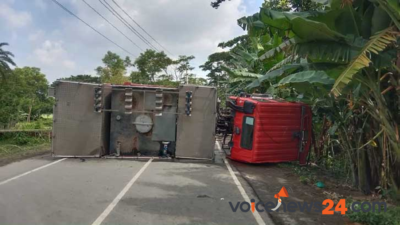 ফায়ার সার্ভিসের একটি পানিভর্তি গাড়ি নিয়মিত মোহড়ার সময় দুর্ঘটনার শিকার