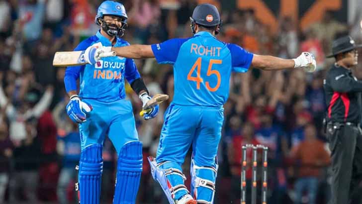 বৃষ্টির কারণে শুক্রবার নাগপুরের দ্বিতীয় টি-টুয়েন্টি ম্যাচ নেমে আসে ৮ ওভারে। সেখানে অস্ট্রেলিয়া আগে ব্যাট করে ৫ উইকেটে ৯০ রান তোলে। খেলায় রোহিত ২০ বলে ৪টি চার ও ৪টি ছক্কায় ৪৬ রানে অপরাজিত থাকেন। তার সঙ্গে ৬ বলে ১ চার ও ১ ছক্কায় ১০ রানে অপরাজিত থাকেন দিনেশ কার্তিক। তার আগে বিরাট কোহলি ১১, লোকেশ রাহুল ১০, হার্দিক পান্ডিয়া ৯ ও সূর্যকুমার শূন্যরানে আউট হন।