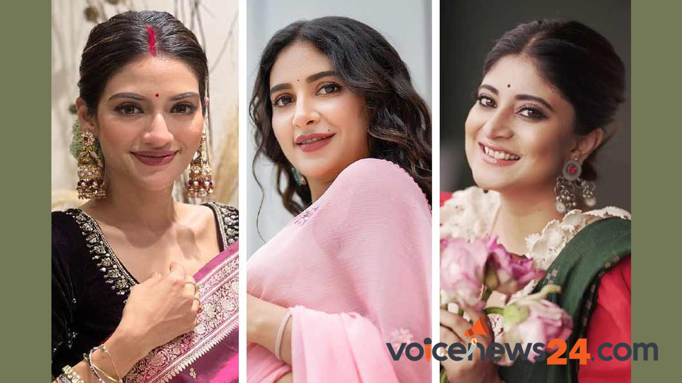ষষ্ঠীর সাজে অন্য লুক-এ নুসরত, শুভশ্রী, সন্দীপ্তা