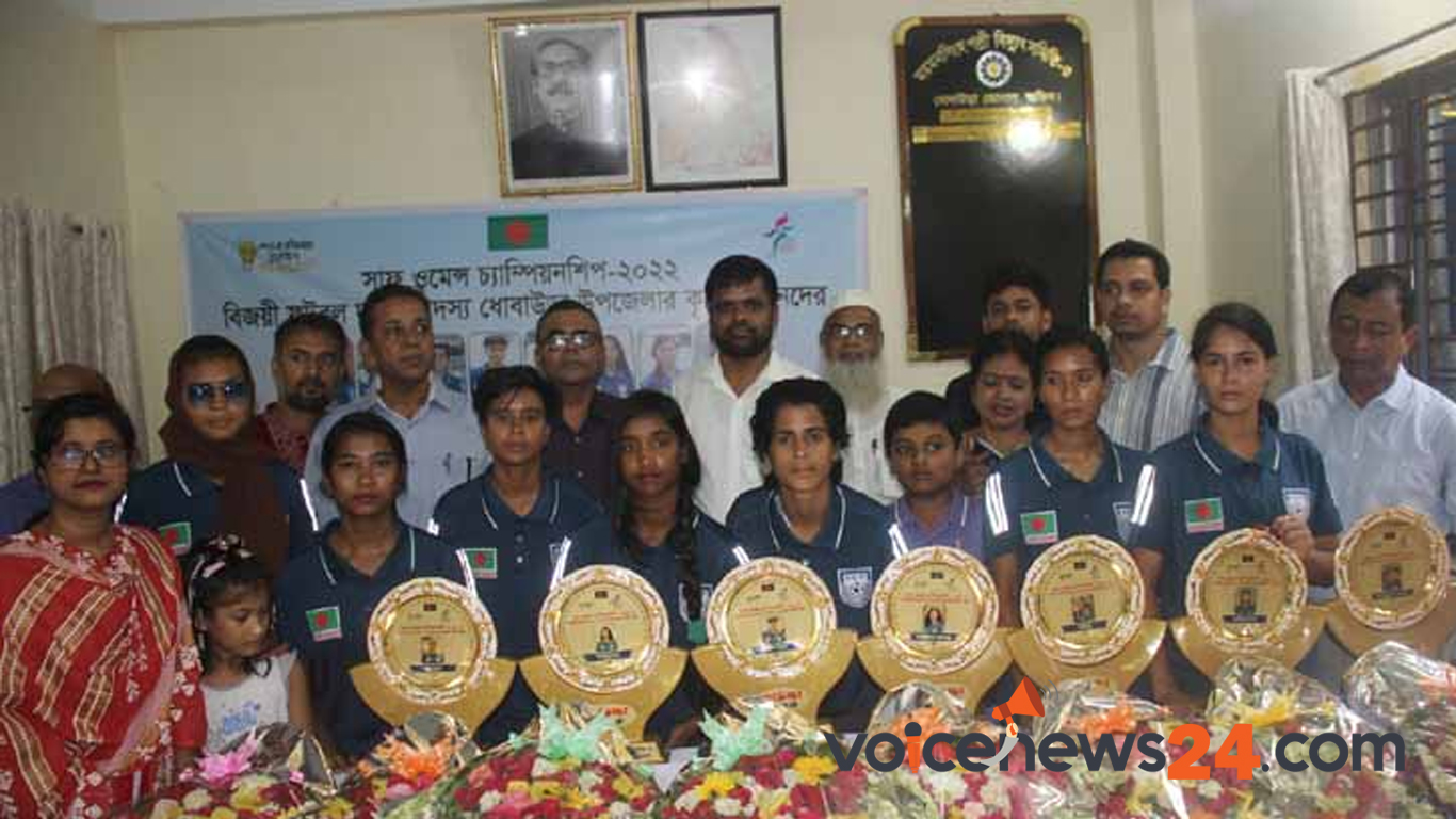 সাফজয়ী কলসিন্দুরের ৮ জন নারী ফুটবলারকে সংবর্ধনা