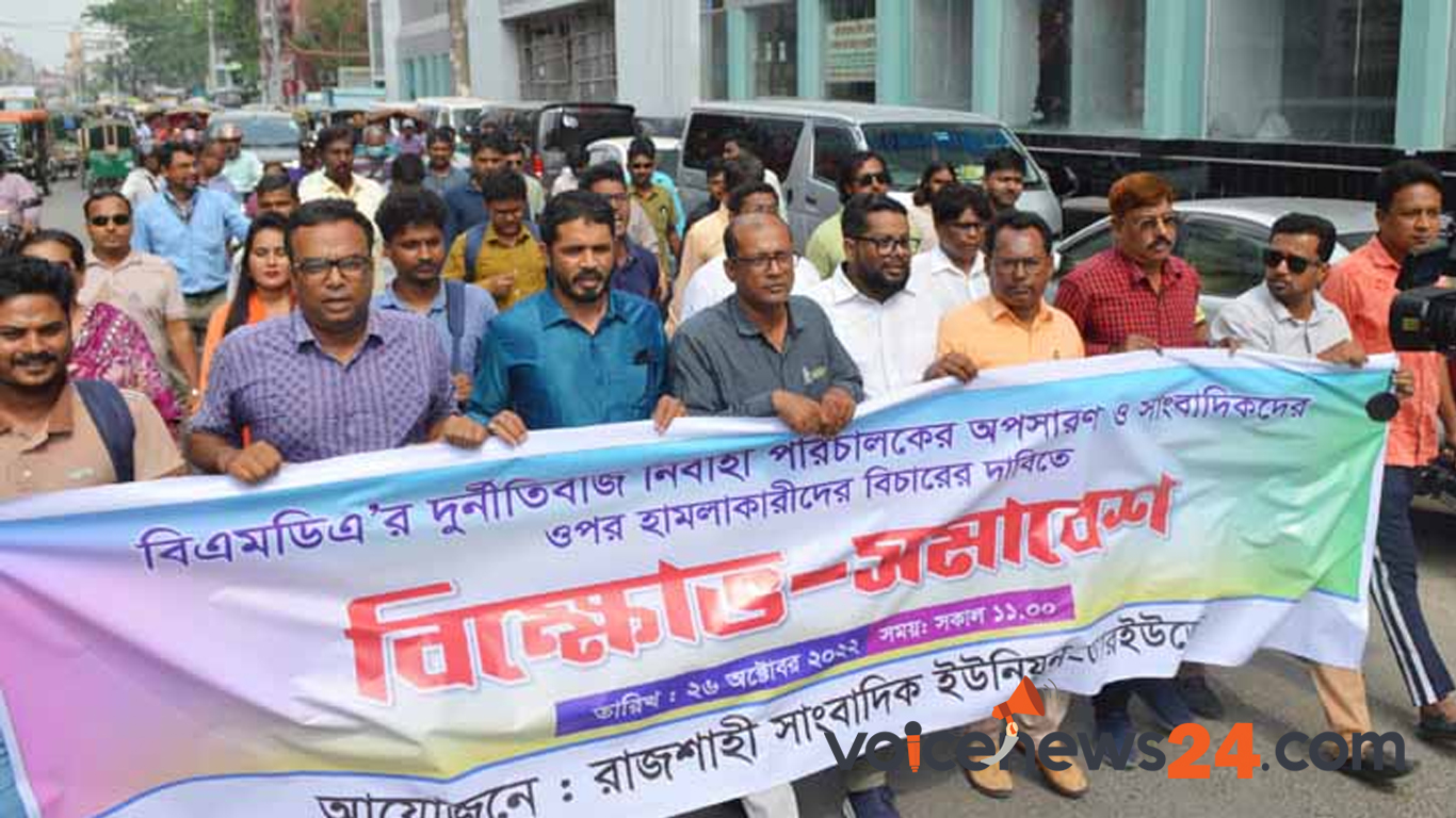 বরেন্দ্র বহুমুখী উন্নয়ন কর্তৃপক্ষের (বিএমডিএ) নির্বাহী পরিচালক আব্দুর রশিদের অপসারণ ও সাংবাদিকদের ওপর হামলাকারীদের বিচারের দাবিতে বিক্ষোভ মিছিল ও সমাবেশ অনুষ্ঠিত হয়েছে। বুধবার বেলা ১১টায় নগরীর দড়িখরবনা মোড়ে রাজশাহী সাংবাদিক ইউনিয়নের উদ্যোগে (আরইউজে) এ সমাবেশ অনুষ্ঠিত হয়।