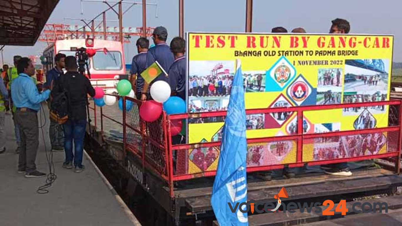 মঙ্গলবার বেলা ১১টায় ফরিদপুরের ভাঙ্গা স্টেশন থেকে পরীক্ষামূলক একটি ট্রেন পদ্মা সেতু পর্যন্ত পৌঁছেছে দুপুর ১টায়। ট্রেনটি বিশেষ আকৃতিতে নির্মিত একটি রেল ইঞ্জিন বিশেষ। এটি গ্যাংকার নামে পরিচিত।