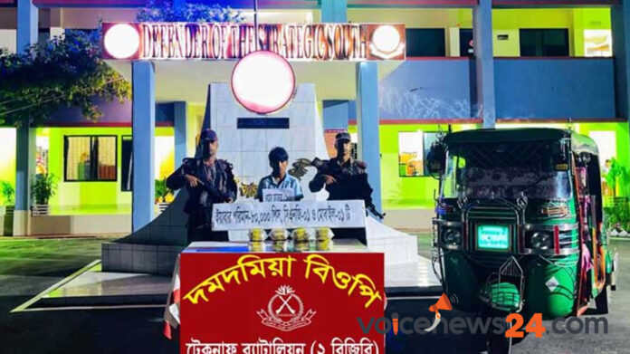 টেকনাফ ২ বিজিবি অধিনায়ক লে. কর্নেল শেখ খালিদ মোহাম্মদ ইফতেখার জানান, টেকনাফ থেকে কক্সবাজারগামী একটি অটোরিকশা দমদমিয়া সড়কের চেকপোস্টে পৌঁছলে গাড়িটিতে তল্লাশি চালান বিজিবি সদস্যরা।