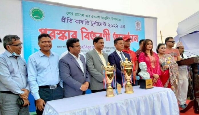বঙ্গবন্ধুর কনিষ্ঠ পুত্র শেখ রাসেলের ৫৯তম জন্মদিন উপলক্ষে রাজশাহীর তানোর উপজেলায় কাবাডি টুর্নামেন্টের আয়োজন করেছেন চিত্রনায়িকা মাহিয়া মাহি। সে উপলক্ষে আয়োজিত অনুষ্ঠানে যোগ দিয়েছেন টুরিস্ট পুলিশের অতিরিক্ত মহাপরিদর্শক ও কাবাডি ফেডারেশনের সাধারণ সম্পাদক হাবিবুর রহমান, রাজশাহী রেঞ্জের ডিআইজি মো. আবদুল বাতেন, মেট্রোপলিটন পুলিশের কমিশনার আবু কালাম সিদ্দিক, জেলা পুলিশ সুপার এ বি এম মাসুদ হোসেন, জেলা প্রশাসক আবদুল জলিলসহ সরকারের কর্মকর্তারা। আজ শুক্রবার সকালে তানোর উপজেলার ফজল আলী মোল্লা ডিগ্রি কলেজ মাঠে এই টুর্নামেন্টের আয়োজন করে মাহিয়া মাহির প্রতিষ্ঠান ‘স্বপ্ন ফাউন্ডেশন’ ও জেলা ক্রীড়া সংস্থা। এর আগে ২০২০ সালে একই মাঠে স্বাধীনতা কাপ ফুটবল টুর্নামেন্টের আয়োজন করেছিলেন মাহি। তখন থেকেই রাজশাহীতে গুঞ্জন রয়েছে, তিনি রাজশাহী-১ আসনে সংসদ সদস্য নির্বাচনে প্রার্থী হতে চান।অনুষ্ঠানের পর মাহিয়া মাহি সাংবাদিকদের বলেন, ‘আমি বঙ্গবন্ধুকে ভালোবাসি। আমি আমার ভেতরে তাঁকে লালন করি। তাঁর প্রতি ভালোবাসা থেকে সেই রিলেটেড সবকিছু আমি পালন করি। কিছু অকেশন আমি ঘটা করে পালন করি। আর যেগুলো পারি না, সেগুলো আমার মতন করে আমি পালন করি। কাবাডি টুর্নামেন্টটাও সে রকম একটি উদ্যোগ। শেখ রাসেলের ৫৯তম জন্মদিন উপলক্ষে এই আয়োজনটা করা। এটা তাঁদের প্রতি আমার সম্মান দেখানো।’নিজেকে বঙ্গবন্ধুর আদর্শে আদর্শিত একজন মানুষ হিসেবে দাবি করে চিত্রনায়িকা মাহি বলেন, ‘এ বিষয়টা আমি সবাইকে জানাতে চাই। সবাই যে যাঁর জায়গা থেকে এটা করতে পারেন। আমি যদিও পলিটিকস (রাজনীতি) বুঝি না, তবুও আমি স্টার্ট (শুরু) করেছি। আমি মানুষের সেবা করতে চাই। পলিটিকস বলতে আসলে আমি বুঝি মানুষের সেবা করা।’রাজশাহীর তানোরে গুঞ্জন আছে, সামনে তিনি সংসদ সদস্য পদে নির্বাচন করতে চান। এ বিষয়ে তিনি বলেন, ‘আপাতত না, অনেক দেরি আছে। যদি এলাকার লোকজন চায়, আমাকে ভালোবাসে, অবশ্যই সেটা হতে পারে, ইনশাল্লাহ।’শুক্রবার সকাল থেকে শুরু হওয়া এই টুর্নামেন্টে অংশ নেয় রাজশাহীর নয়টি উপজেলার নয়টি এবং জেলা পুলিশের একটি দল। সকালে অভিনেতা ও পুলিশ কর্মকর্তা ডি এ তায়েব টুর্নামেন্টের উদ্বোধন করেন। প্রথম পর্বে প্রধান অতিথি হিসেবে উপস্থিত ছিলেন বঙ্গবন্ধু সাংস্কৃতিক জোটের কেন্দ্রীয় সভাপতি ফালগুনী হামিদ। বিকেলে এই টুর্নামেন্টের পুরস্কার বিতরণ করেন অতিথিরা।মাহির গ্রামের চাঁপাইনবাবগঞ্জের নাচোল উপজেলায়। তাঁর জন্ম তানোর উপজেলার মুণ্ডুমালায় নানাবাড়িতে। মাঝেমধে৵ই তিনি এখানে আসেন। এ ছাড়া তিনি বঙ্গবন্ধু সাংস্কৃতিক জোটের কেন্দ্রীয় কমিটির যুগ্ম সাধারণ সম্পাদক। তিনি এ সংগঠনের রাজশাহী বিভাগের আহ্বায়ক হিসেবে দায