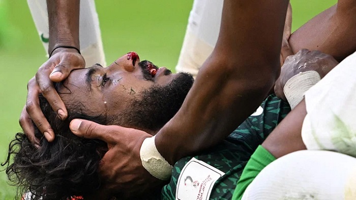 আর্জেন্টিনার বিপক্ষে অবিস্মরণীয় জয় উদযাপনের মাঝেই দুঃসংবাদ পেল সৌদি আরব। সতীর্থ গোলরক্ষকের সঙ্গে সংঘর্ষে মাঠেই লুটিয়ে পড়েছিলেন দলটির ডিফেন্ডার ইয়াসের আল শাহরানি। এবার জানা গেল, চোয়ালের হাড় ভেঙে গেছে তার। এমনকি প্রাণ বাঁচাতে তাকে নেয়া হয়েছে জার্মানিতে।’গালফ নিউজ’ জানিয়েছে, নিজ দলের গোলরক্ষকের সঙ্গে মাঠের ওই সংঘর্ষের পর প্রচণ্ড রক্তক্ষরণ হচ্ছিল শাহরানির। অবস্থার অবনতি হওয়ায় তাকে জরুরি চিকিৎসার জন্য সৌদি ক্রাউন প্রিন্স মোহাম্মদ বিন সালমানের নির্দেশে প্রাইভেট জেটে জার্মানিতে নেওয়া হয়েছে। চলতি কাতার বিশ্বকাপের গ্রুপ পর্বে নিজেদের প্রথম ম্যাচে আর্জেন্টিনার মুখোমুখি হয়েছিল সৌদি আরব। ম্যাচের নির্ধারিত সময়ের মধ্যেই ২-১ গোলে এগিয়ে যায় মধ্যপ্রাচ্যের দলটি। কিন্তু যোগ করা সময়ে ঘটে ওই অঘটন। নিজ দলের গোলরক্ষক আল ওয়াইসের হাঁটুর সঙ্গে সংঘর্ষে মুখে আঘাত পান শাহরানি। সঙ্গে সঙ্গেই মাটিতে লুটিয়ে পড়েন তিনি। মুখ থেকে রক্ত বের হতে দেখা যায় তার। পরে স্ট্রেচারে করে মাঠ ছাড়তে হয় তাকে। ম্যাচটি অবশ্য শেষ পর্যন্ত জিতে যায় সৌদি আরব।সৌদি আরবের পরের দুই ম্যাচের প্রতিপক্ষ মেক্সিকো ও পোল্যান্ড। এক জয়ে এখন পর্যন্ত গ্রুপ ‘সি’-এর শীর্ষে আছে দলটি। গ্রুপের বাকি দলগুলো এখনও জয়ের মুখ দেখেনি। মঙ্গলবার রাতেই আরেক ম্যাচে ড্র নিয়েই মাঠ ছেড়েছে পোল্যান্ড ও মেক্সিকো। ফলে শেষ ষোলোর পথ অনেকটাই উন্মুক্ত হয়ে গেছে সৌদির জন্য।যদিও ঠিক কবে নাগাদ আবারও মাঠে ফিরতে পারবেন শাহরানি, তা এখনই নিশ্চিত নয়। তবে হাসপাতাল থেকেই ঐতিহাসিক জয়ে সৌদিবাসীকে অভিনন্দন জানিয়েছেন শাহরানি।এনএস//