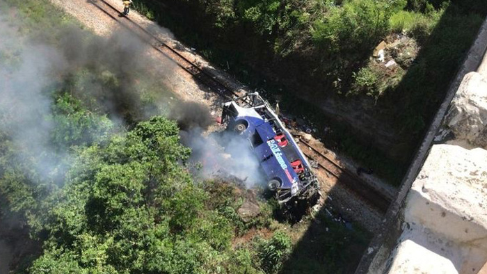 ব্রাজিলে ৫০ ফুট উঁচু একটি ব্রিজ থেকে রেললাইনের ওপর আছড়ে পড়ল একটি পিকনিক বাস। যাতে অন্তত ১৬ জনের প্রাণহানি ঘটেছে এবং আহত হয়েছেন আরও ২৭ জন। দক্ষিণ আমেরিকান দেশটির দক্ষিণ পূর্বাঞ্চলীয় মাইনাস গেরাইস রাজ্যের জোয়াও মনলিভাদে শহরে স্থানীয় সময় শুক্রবার (৪ ডিসেম্বর) এ দুর্ঘটনা ঘটে।আপাতভাবে মনে করা হচ্ছে- ট্যুর বাসটির চালক এটির নিয়ন্ত্রণ হারিয়ে ফেলায় এ দুর্ঘটনা ঘটে। স্থানীয় কর্মকর্তাদের বরাত দিয়ে ডেইলি মিরর এ খবর জানায়।কর্মকর্তারা বলছেন- ব্রেক ফেল হওয়ায় চালক বাসটির নিয়ন্ত্রণ হারিয়ে ফেলে। তবে বাসটিতে ঠিক কতজন যাত্রী ছিল তা তাৎক্ষণিকভাবে জানা যায়নি।ফায়ার বিভাগ বলছে- ছিটকে পড়ার আগেই বাস থেকে চালকসহ ছয়জন বেরিয়ে আসতে সক্ষম হয়।দেশটির পরিবহন কর্মকর্তারা বলছেন- ব্রাজিলে ২০১৫ থেকে ২০১৯ সাল পর্যন্ত সড়ক দুর্ঘটনায় বছরে গড়ে ৩০ হাজার লোকের মৃত্যু হয়েছে।