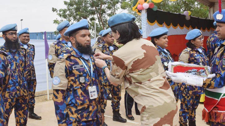 মালিতে জাতিসংঘ শান্তিরক্ষা মিশনে নিয়োজিত বাংলাদেশ ফর্মড পুলিশ ইউনিট-২ (রোটেশন-৪) এর ১৪০ জন সদস্যকে জাতিসংঘ শান্তি পদক পরিয়ে দেন মালির জাতিসংঘ শান্তিরক্ষা মিশনের পুলিশপ্রধান পুলিশ কমিশনার জেনারেল বেটিনা প্যাট্রিসিয়া বুগানি।