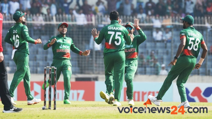 তিন পেসার ও দুই স্পিনার নিয়ে মাঠে বাংলাদেশ দল। মুস্তাফিজুর রহমানের সঙ্গে পেসে ইবাদত হোসেন চৌধুরি ও হাসান মাহমুদ। বোলিংয়ে সাকিব আল হাসানের সঙ্গে মেহেদী হাসান মিরাজ।