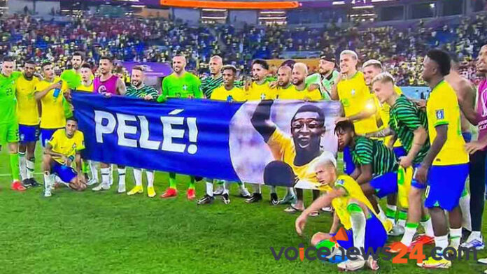 সোমবার দক্ষিণ কোরিয়াকে ৪-১ গোলে হারানোর পর মাঠে পেলের ছবি এবং নাম লেখা ব্যানার হাতে নিয়ে ছবি তোলেন তারা। গ্যালারিতেও ছিল পেলের পোস্টার-ব্যানার। সেখানে পেলের সুস্থতা কামনা করে ব্যানার দেখা গেল।
