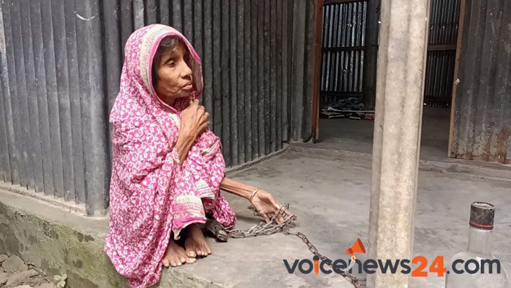 বুধবার সরেজমিন দেখা গেছে, বাড়ির বারান্দার খুঁটির সঙ্গে শিকল দিয়ে বেঁধে রাখা হয়েছে বৃদ্ধা সুখী মনিকে। শিকলে বন্দি অবস্থায় ওই বৃদ্ধা বারবার বলছেন- ‘আমাকে হাসপাতালে রেখে আয়! আর দুইটা ভাত দে! আমি মরতে চায় না, আমি বাঁচতে চাই।’