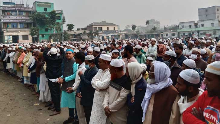 কয়েক হাজার মানুষের উপস্থিতিতে বুধবার সকাল ১০টায় শহিদ বরকত স্টেডিয়ামে জানাজা অনুষ্ঠিত হয়।