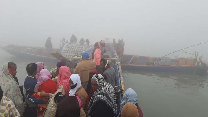 ঘন কুয়াশার কবলে পড়ে প্রায় এক ঘণ্টা ঘুরে আবার পূর্বের স্থানেই ফিরে আসে ইঞ্জিনচালিত এ শ্যালো নৌকাটি।