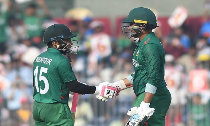 খেলাপ্রকাশ: ১৩ অক্টোবর, ২০২৩ ১৮:১৮২৪৫ রানে থামল বাংলাদেশের ইনিংস ক্রীড়া প্রতিবেদক২৪৫ রানে থামল বাংলাদেশের ইনিংসছবি : মীর ফরিদ, চেন্নাই থেকেবাংলাদেশের ইনিংস আর বিপর্যয় যেন প্রতিশব্দ হয়ে গেছে। আজ নিউজিল্যান্ডের বিপক্ষেও ব্যতিক্রম কিছু দেখা যায়নি। শুরুতে বিপর্যয়, মাঝে একটি জুটি, শেষ পর্যন্ত বাংলাদেশের ইনিংস থেমেছে ২৪৫ রানে।ইনিংসের শুরুতে ৫৬ রান তুলতে ৪ উইকেট নেই।প্রথম বলে আউট হয়ে ফেরেন লিটন দাস। দ্বিতীয় উইকেটে মেহেদী হাসান মিরাজ ও তানজিদ হাসান তামিমের জুটি ৪০ রানের। তানজিদ ১৬ রানে লকি ফার্গুসনের বলে ডেভন কনওয়ের হাতে ক্যাচ দিয়েছেন। এর পর একই পথ অনুসরণ করেছেন মিরাজ (৩০) ও নাজমুল হোসেন শান্ত (৭)।এখান থেকে সাকিব আল হাসান ও মুশফিকুর রহিমের ব্যাটে ঘুরে দাঁড়িয়েছিল বাংলাদেশ। দুজনের ৯৬ রানের জুটি ভাঙার পর আবার বিপর্যয়। জুটিটা ভাঙে সাকিব আল হাসানের বিদায়ে। ৪০ রান করে আউট হয়েছেন বাংলাদেশ অধিনায়ক। এরপর বেশিক্ষণ টিকতে পারেননি মুশফিক। দলীয় ১৭৫ রানে ফিরেছেন তিনি। ম্যাট হেনরির নিচু হয়ে আসা বলের নাগাল না পেয়ে বোল্ড হয়েছেন মুশফিক। দলের পক্ষে সর্বোচ্চ ৬৬ রান এসেছে তাঁর ব্যাট থেকে। মুশফিক ইনিংসটি সাজান ছয় চার ও দুই ছক্কায়।মুশফিকের আউটের পর দলকে টানতে পারেননি তাওহিদ হৃদয়। ২৫ বলে ১৩ রানে আউট হয়েছেন তাওহিদ। ট্রেন্ট বোল্টের বলে মিচেল স্যান্টনারের হাতে ক্যাচ দিয়েছেন তিনি। বাংলাদেশের ইনিংসটা ভদ্রস্থ চেহারা পেয়েছে মূলত মাহমুদ উল্লাহ রিয়াদের অপরাজিত ৪১ রানের ইনিংসে। মাহমুদ উল্লাহর ৪৯ বলের ইনিংসে দুই চার ও দুই ছক্কা। এর আগে ১৯ বলে দুই ছক্কায় ১৭ রানের ক্যামিং ইনিংস খেলেছেন তাসকিন আহমেদ। এখন দেখার বিষয়, ২৪৫ রান হাতে নিয়ে বোলাররা কতটা লড়াই করতে পারেন।
